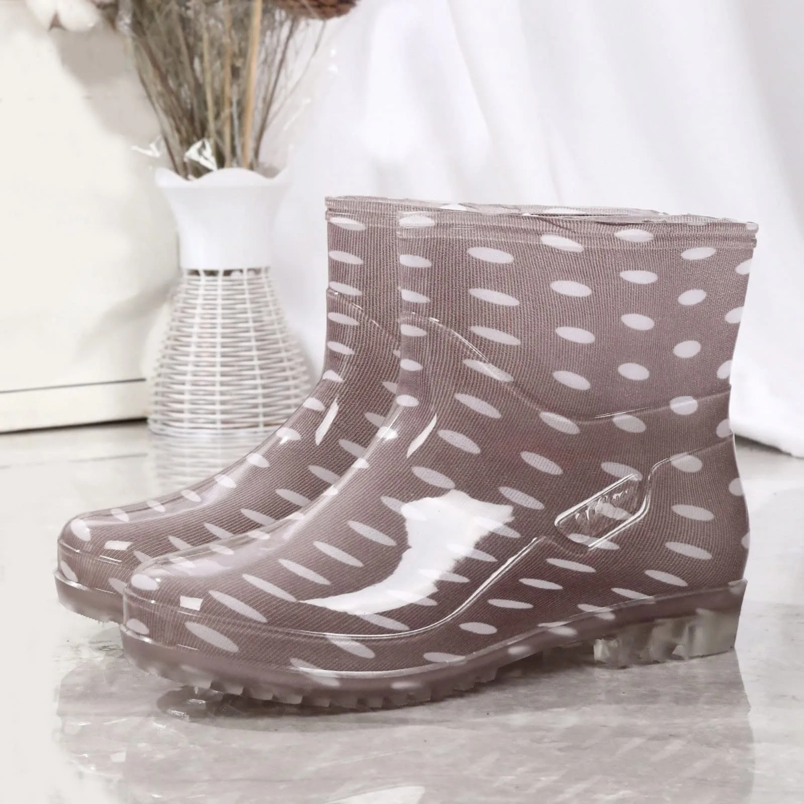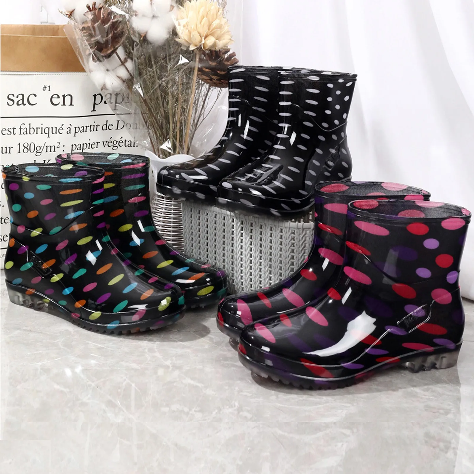 Black Polka Dots Women's Rain Shoes Waterproof And Non-slip Kitchen Work Rubber Shoes Pvc Short Tube Rain Boots Summer Shoes