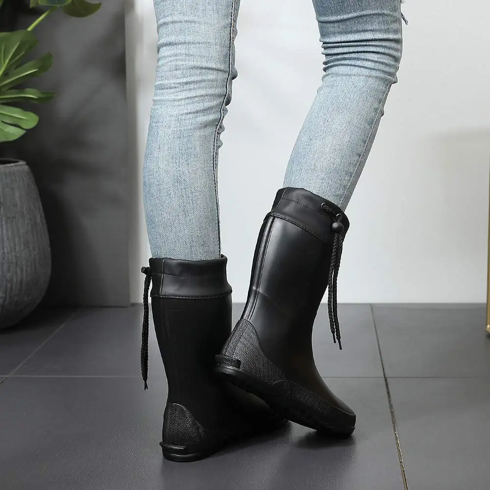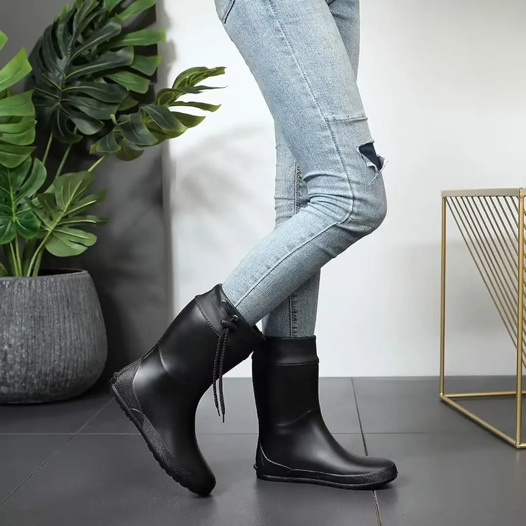 Crestar Mid Calf Rain Boots For Women Fashion Collar Gardening Boots Outdoor Ultra Lightweight Portable Waterproof Garden Shoes