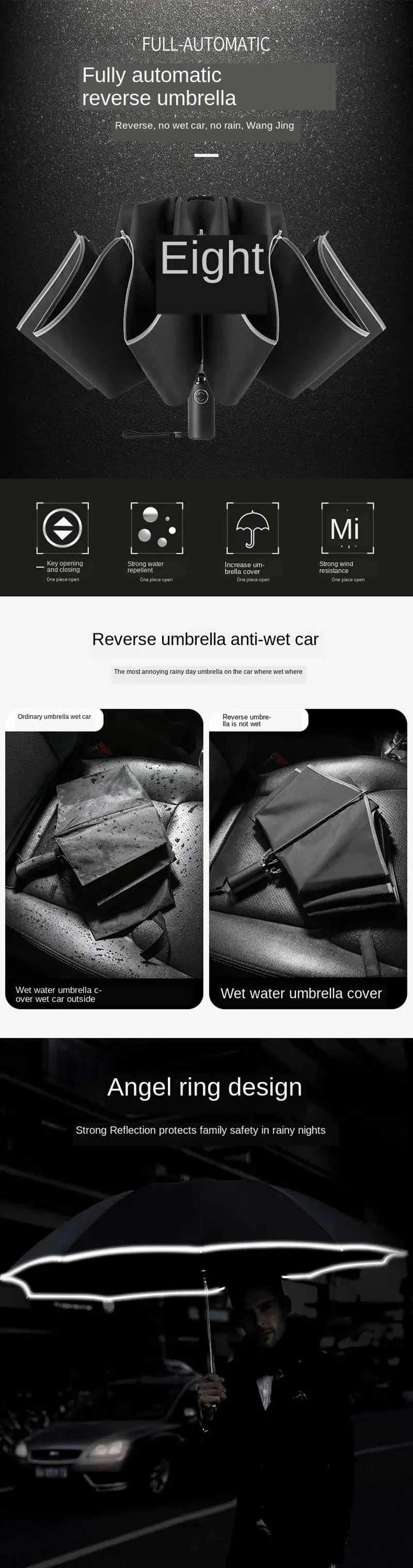 Men Women Umbrella  Fully Automatic Reverse Folding Umbrella with Windproof Reflective Stripe UV Umbrellas