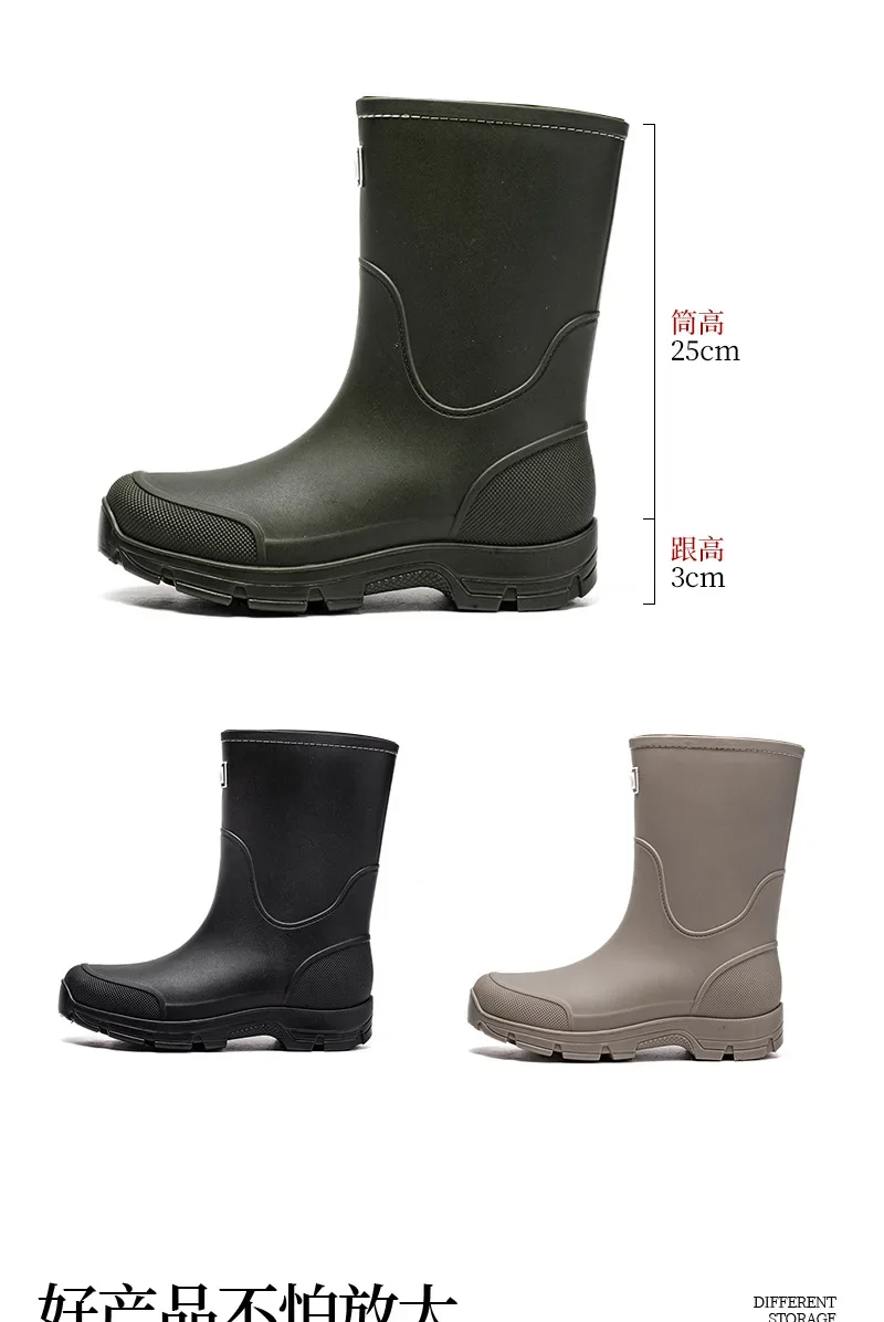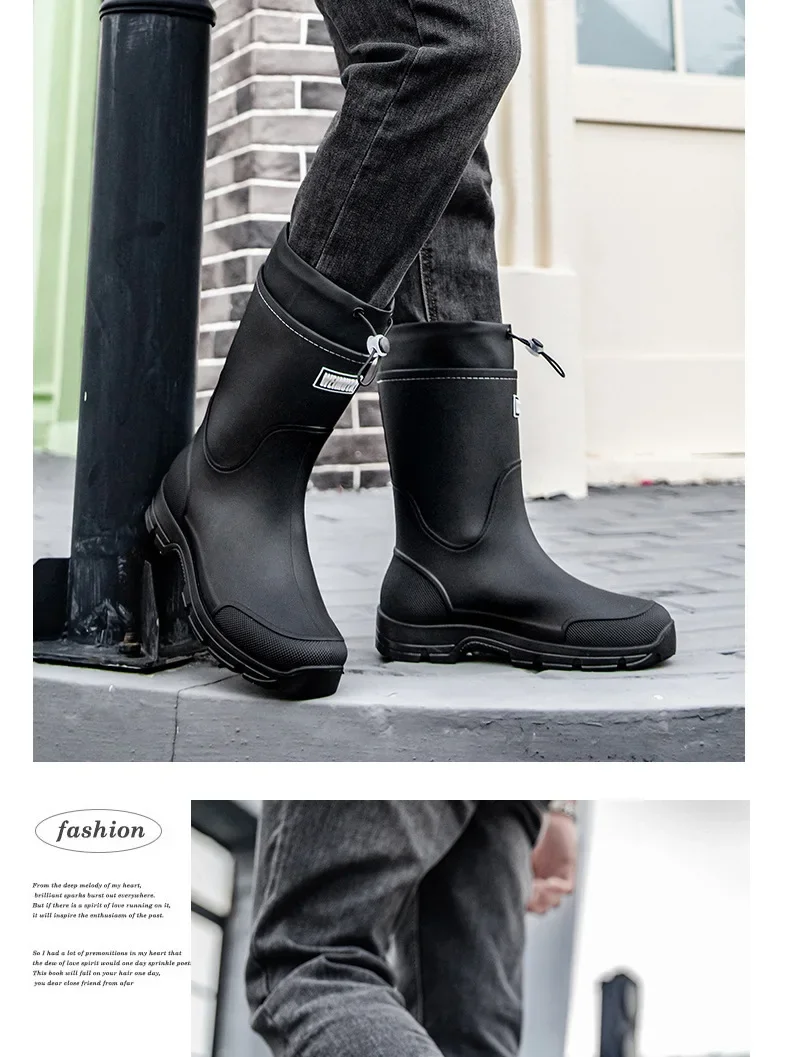 Men's Mid-calf Rain Boots. New Style. Fashionable Mid-calf Outdoor Slip-resistant Water Shoes. Lightweight and Waterproof