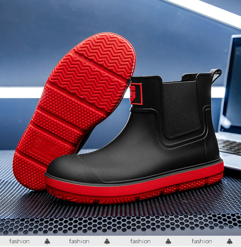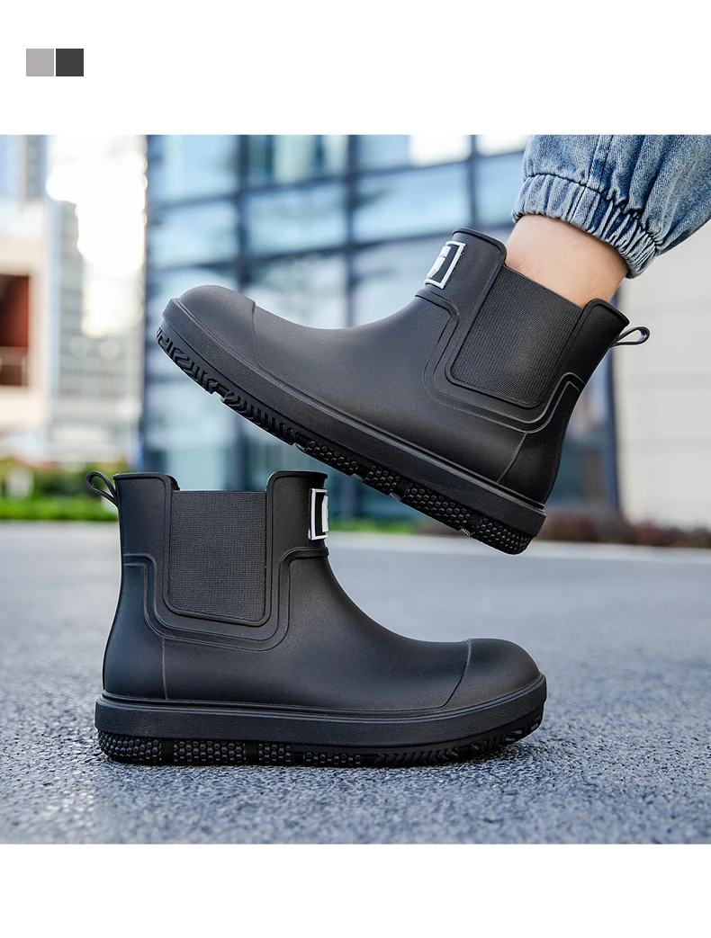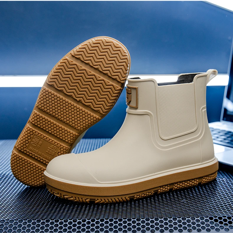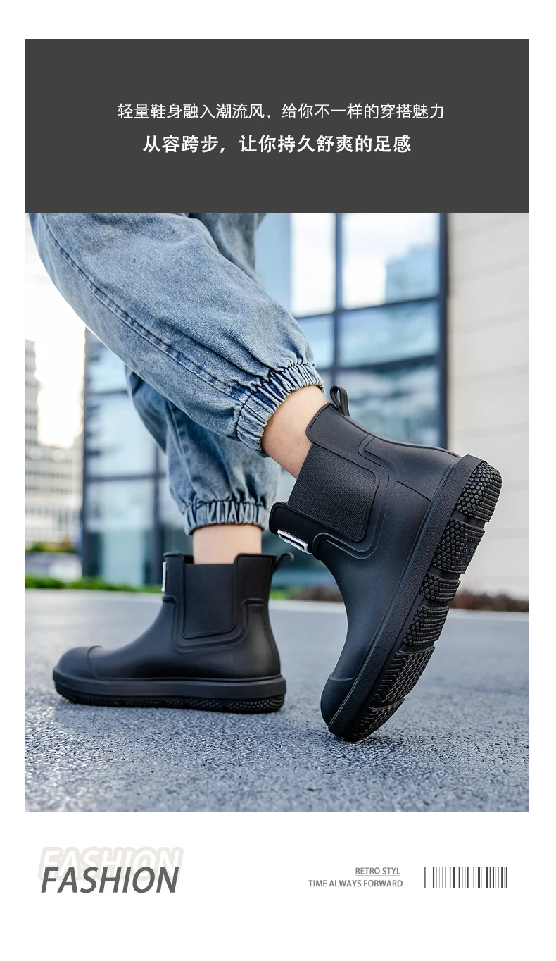 Men's Short-Tube Non-Slip Rain Boots, Fashionable Low-Top Water Shoes, Pvc One-Time Molded Rain Boots, Pastoral Labor Waterproof Shoes