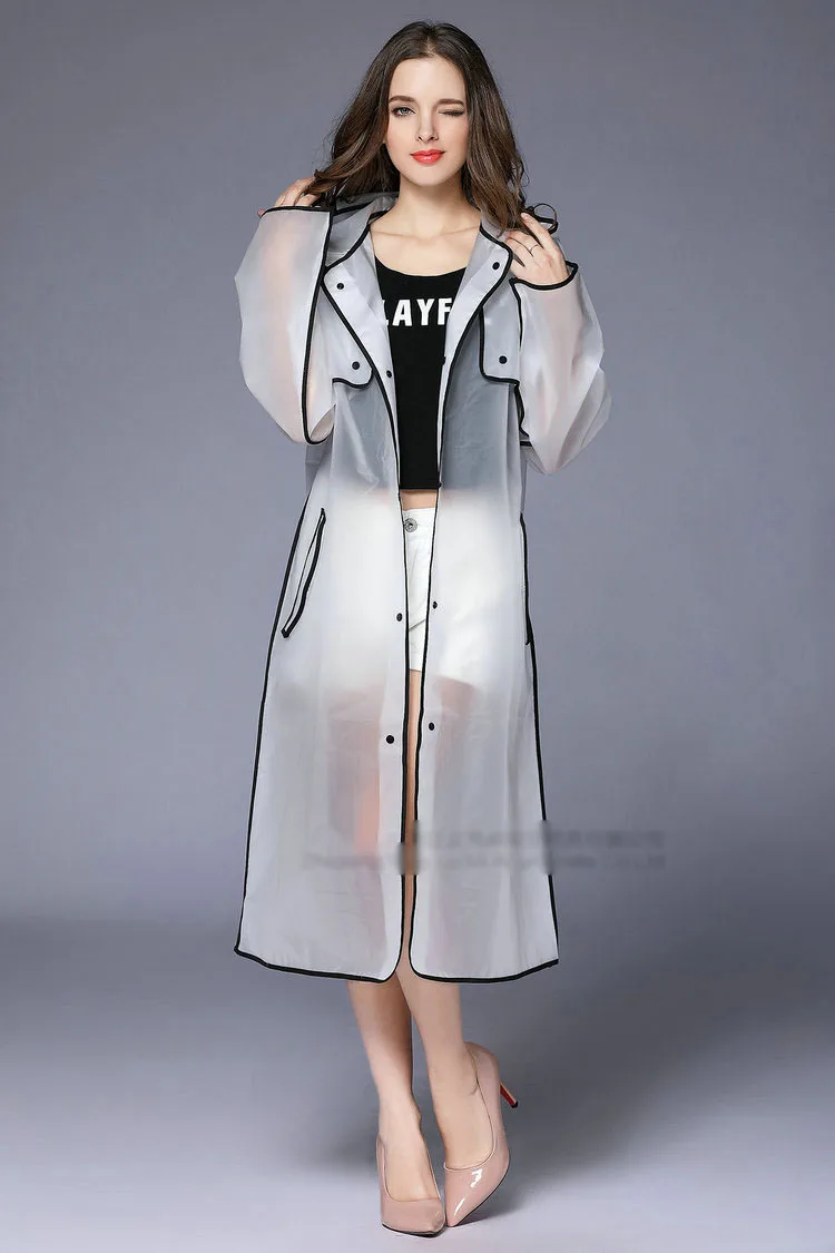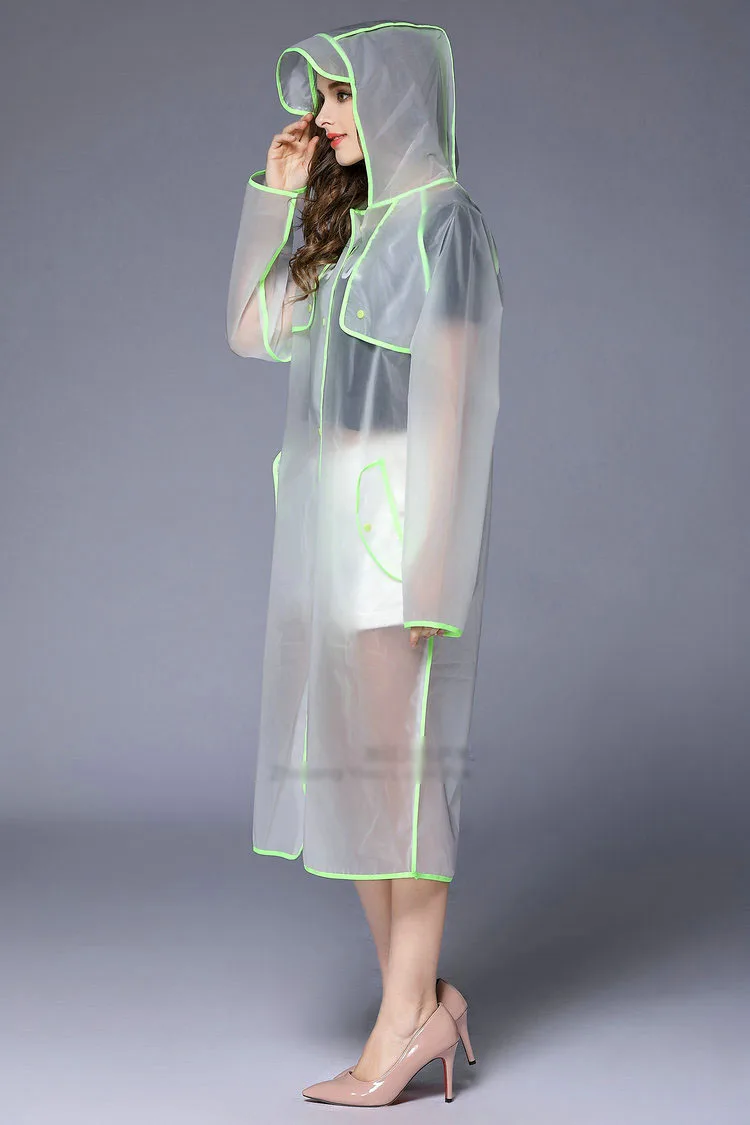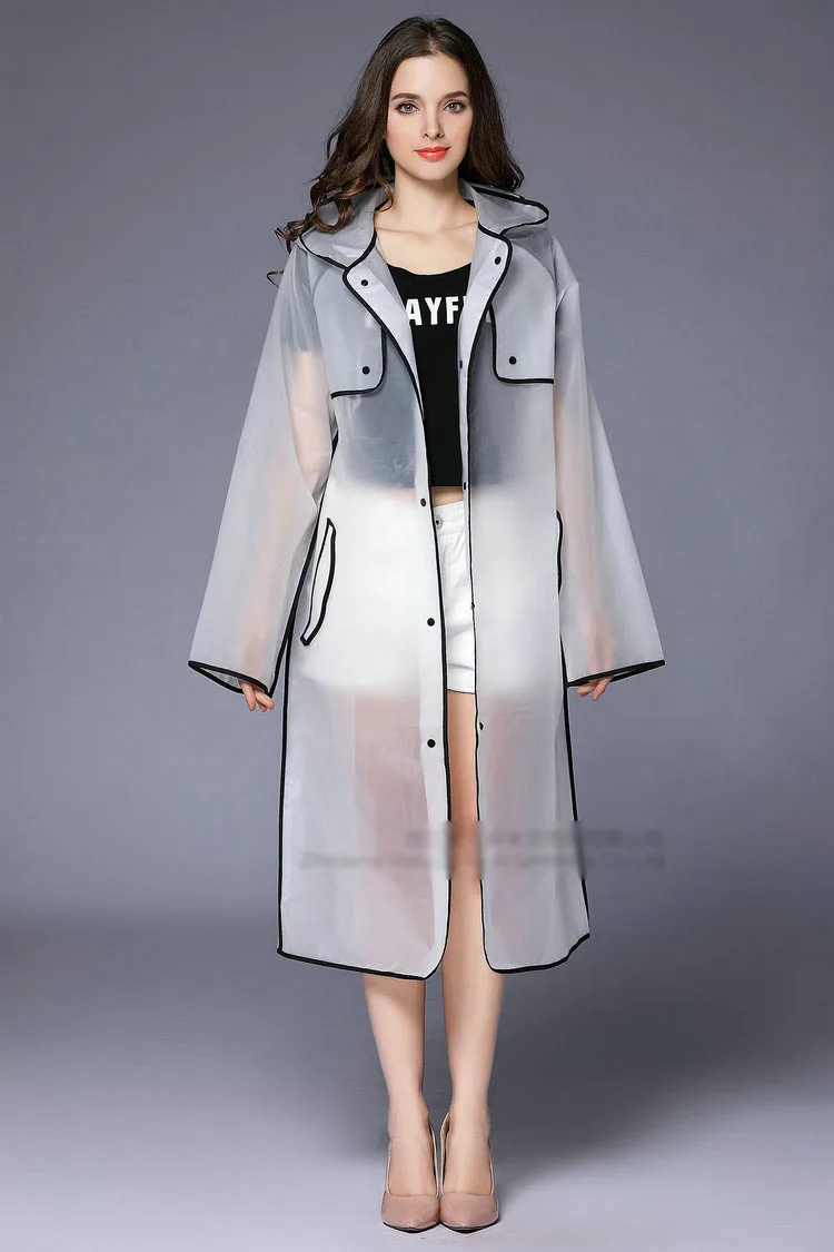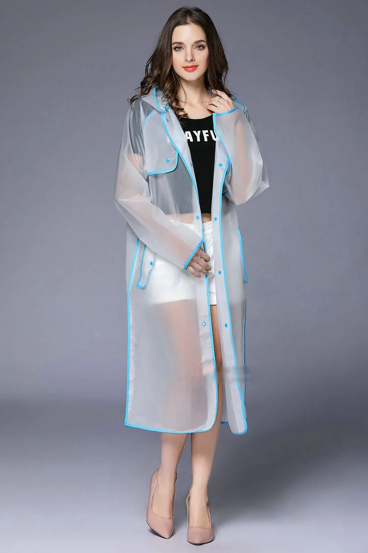 New Fashion EVA Women Poncho With Hat Ladies Waterproof Long Translucent Raincoat Adults Rain Coat