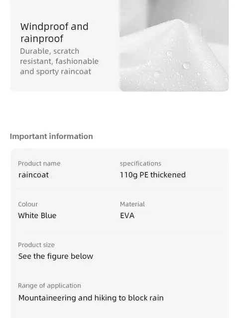 • Suitable for climbing and travel :The raincoat is designed for outdoor activities such as climbing and travel, making it a versatile addition to any adventurer's gear collection.