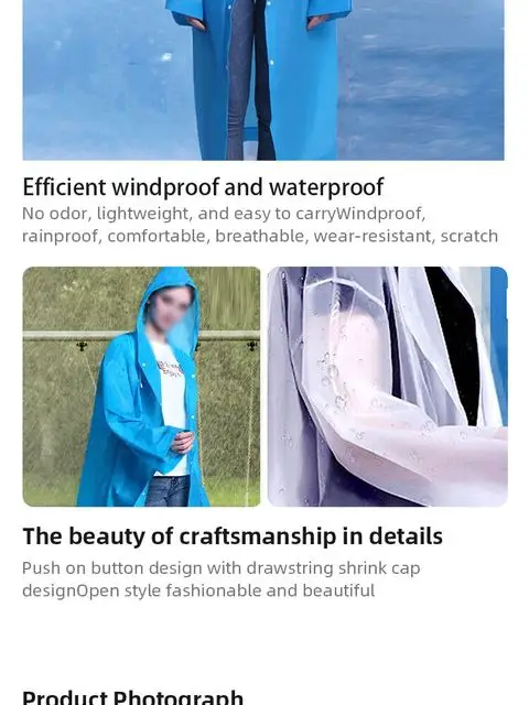 • One-piece design for easy use :The raincoat has a one-piece design, making it easy to put on and take off during outdoor activities.