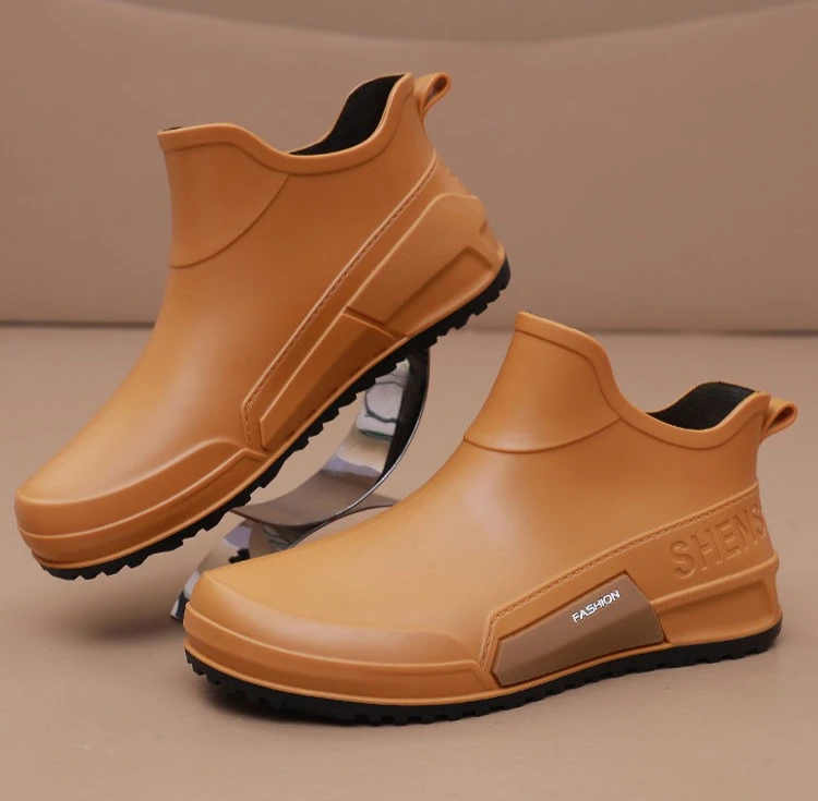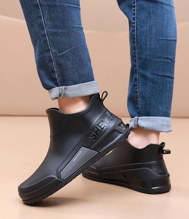 Waterproof Ankle Rain Boots for Men Chef Kitchen Fleece-lined Man Shoes Work Fashion Rainy Day Non-slip Garden Fishing Wellies