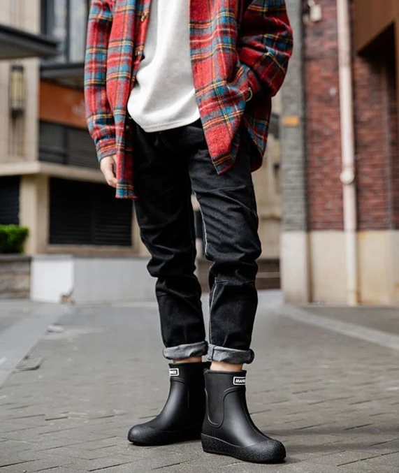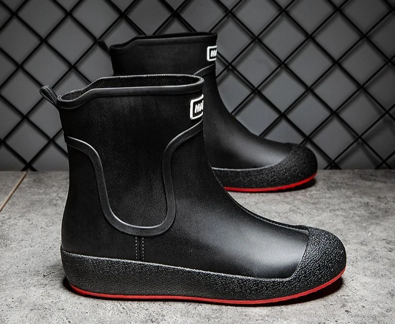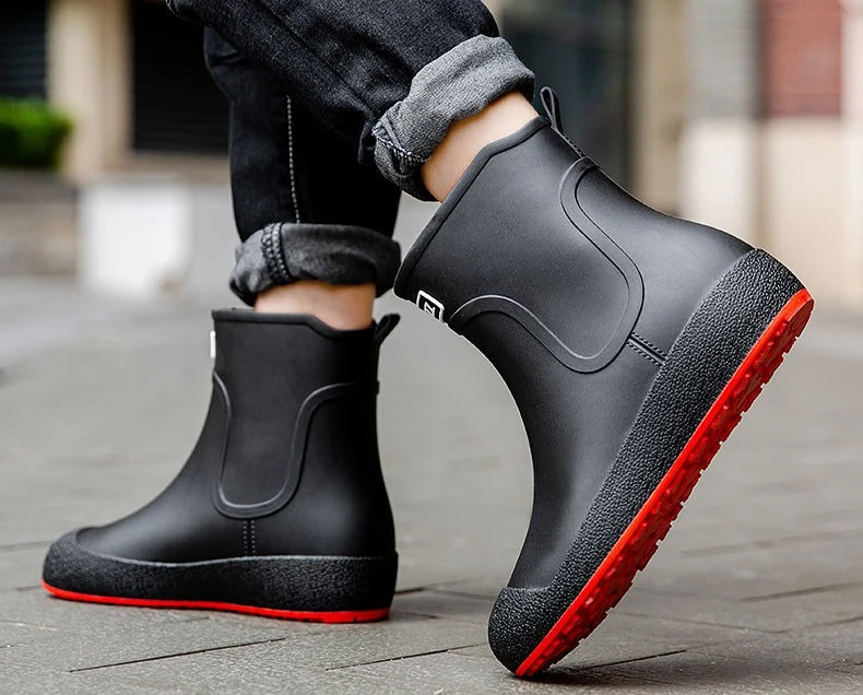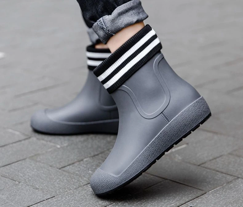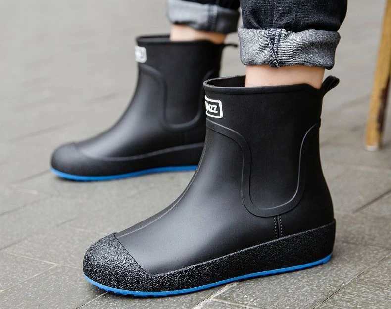 Winter Big Size Warm Waterproof Fleece-lined Short Men's Rain Boots Chef Kitchen Rainy Day Adult Without Lacing Mud Male Shoes